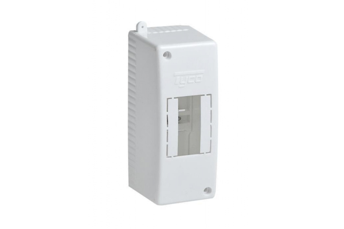 Белый двухмодульный бокс изготовлен из термостойкого пластика и обеспечивает высокую степень защиты IP 30.