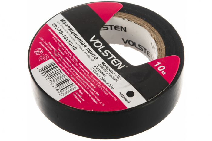 Изолента Volsten V02-7B-13х15-10 черная