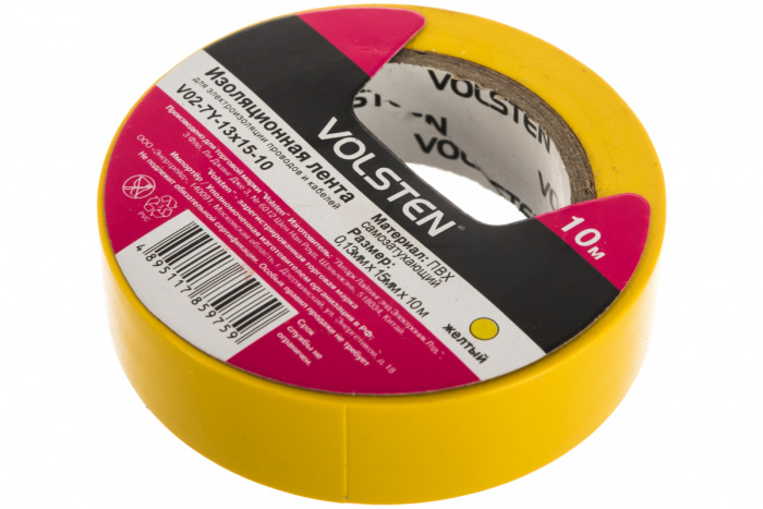 Изолента Volsten V02-7Y-13х15-10 желтая