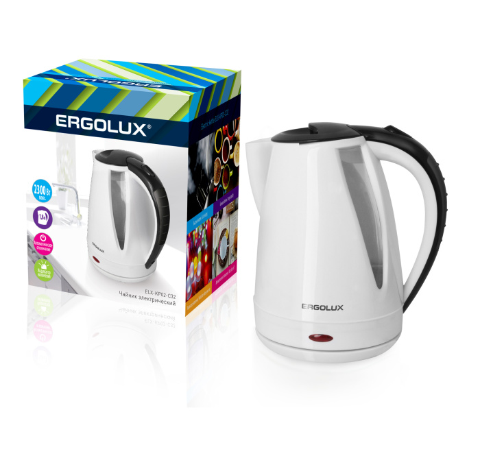 Чайник Ergolux ELX-KP02-C32 белый/черный