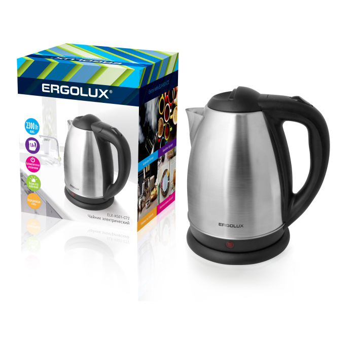 Чайник Ergolux ELX-KS01-C72 матовый хром/черный