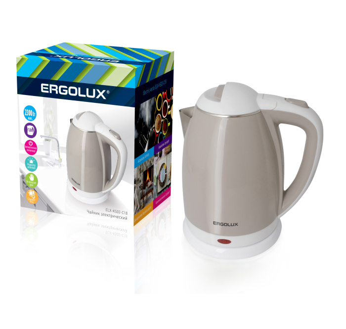 Чайник Ergolux ELX-KS02-C18 бежевый/белый