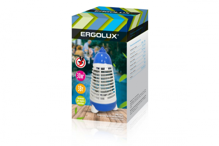 Антимоскитный светильник Ergolux MK-001 3 Вт, LED 13764 используется для уничтожения насекомых.