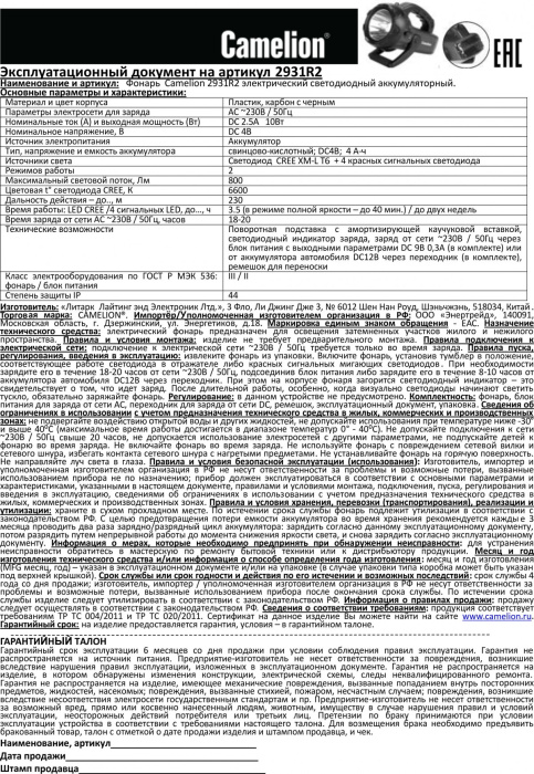 Фонарь аккумуляторный Camelion LED2931R2 10W