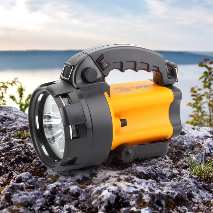Светодиодный фонарь ЭРА PA-604 прожекторный аккумуляторный с регулируемой подставкой Фонарь поддерживает два режима работы:. На 50% мощности и на 100% мощности. Дальность луча прожектора составляет 130 метров. В прожекторе использовано три белых светодиода мощностью 1 ВТ. В задней части фонаря встроен сигнальный красный светильник.Прожектор может работать 5 часов без подзарядки, аккумулятор заряжается от сети 220 V или бортовой сети автомобиля. Для большего удобства фонарь оснащён ремнём для переноски на плече.