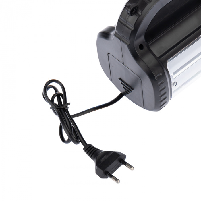 Прожектор поисковый с головным и боковым светом, со встроенным аккумулятором и встроенным зарядным устройством, зарядка напрямую от сети 220 В (евророзетка), плечевой ремень в комплекте.