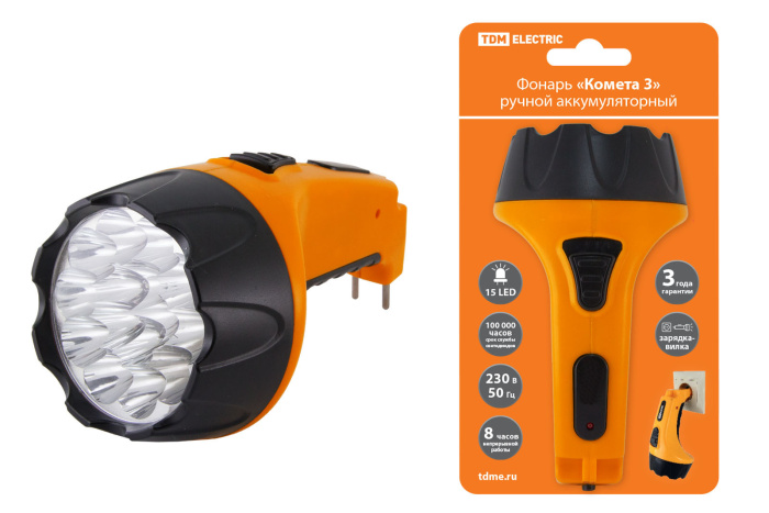 Фонарь TDM "Комета 3" ручной аккумуляторный 15св/д