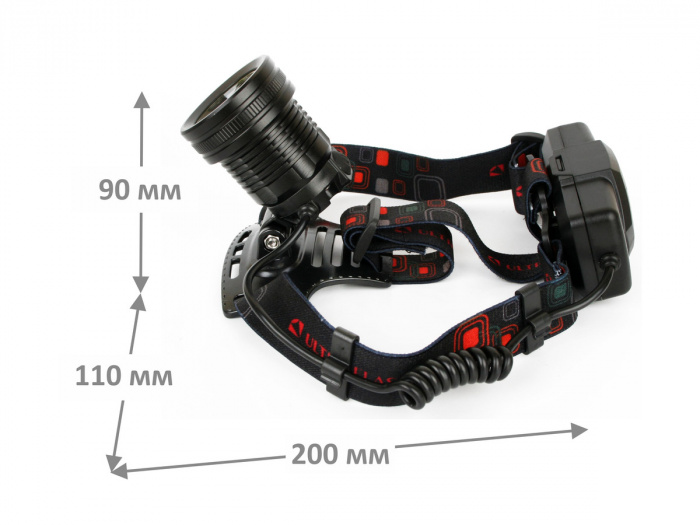 Светодиодный налобный фонарь Ultraflash E1335. Дистанция освещения — до 250 метров. Регулируемый фокус (ZOOM). 4 режима работы — XML-T6 / кольцевой COB LED / все LED BOOST / мигалка. Возможность работы и от одного, и от двух аккумуляторов. Возможность работы напрямую от Powerbank через вход Micro USB. Индикатор заряда, меняющий цвет при окончании заряда. Выключатель: четырехпозиционный кнопочный. Время работы при полностью заряженном аккумуляторе (для емкости 1200 мА-ч):: в режиме XML-T6 — до 3,5 часов, в режиме COB — до 9 часов, все LED — до 3,4 часов, мигающий режим — до 4 часов. Заряд через вход Micro USB при помощи распространенных зарядных устройств для телефонов с Андроидом. Время заряда (ток заряда 1А, аккумулятор 1200 мА-ч) — 6 часов.