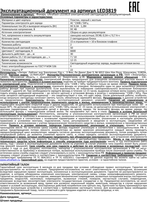 Фонарь UltraFlash LED3819