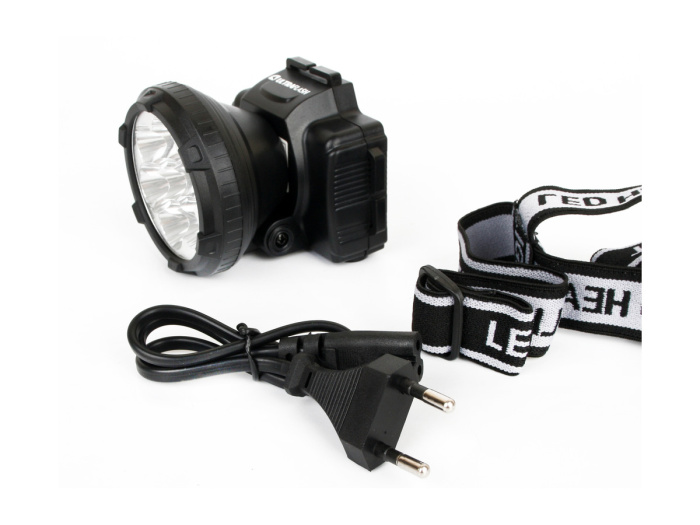В комплекте - Сетевой кабель 220 вольт для заряда, налобный ремешок