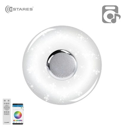 Люстра музыкальная Bluetooth, пульт Estares Music RGB 40W R-APP-330 WHITE/CHROME до15кв.м