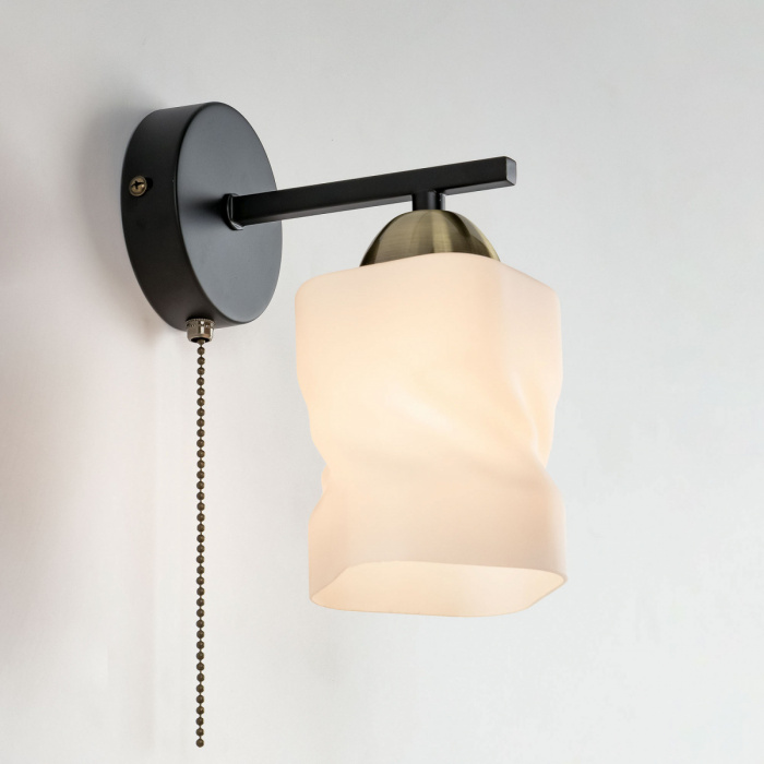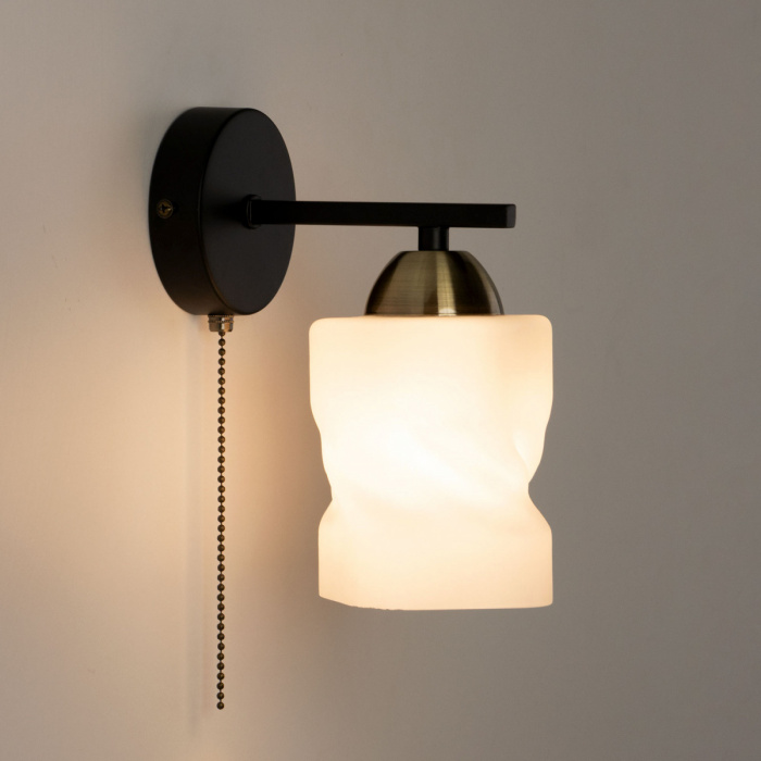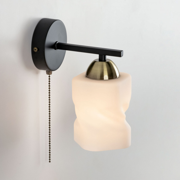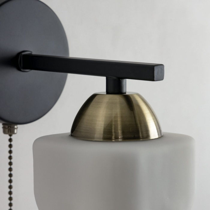 Бра Citilux Джером CL129415 выполнено в современном стиле. Корпус настенного светильника металлический, цвет чёрный, с декоративными бронзовыми элементами. Основание круглой формы, на нем расположен 1 рожок. Плафон стеклянный матовый. В изделии одна лампа с цоколем Е27 и максимальной мощностью для ламп накаливания 75Вт. Светодиодные лампы можно использовать более яркие. Тип крепления – планка.