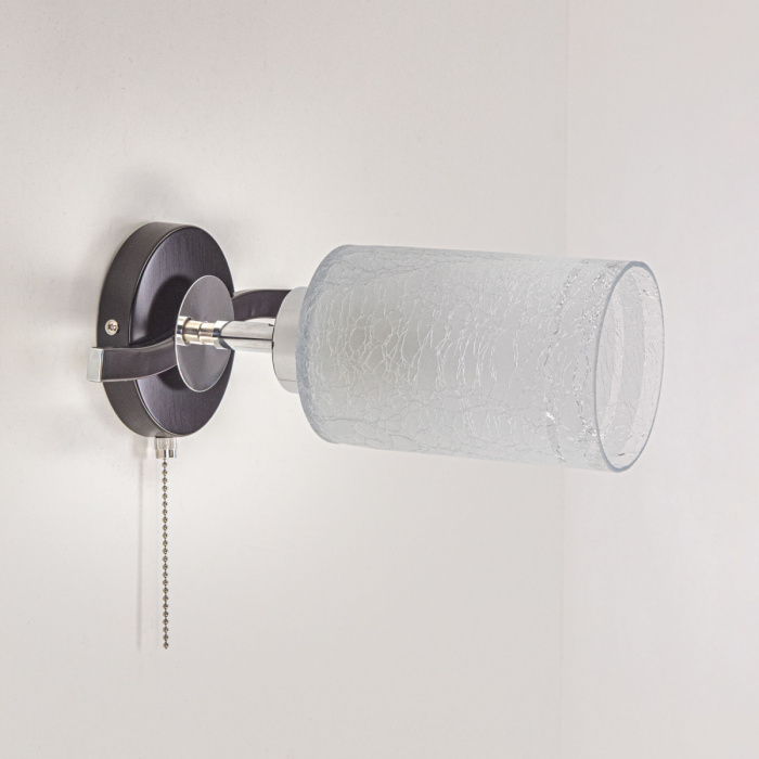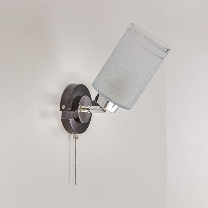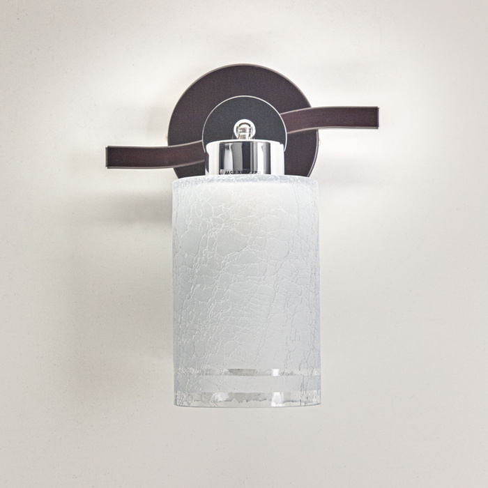 Коллекция «Фортуна» обязательно привлечёт ваше внимание своей универсальностью и широкими функциональными возможностями. Плафоны серии выполнены из стекла “Кракле” с частичным матированием, за счет чего, светильник испускает чистый, мягкий и живой свет. Коричневая (венге) металлическая конструкция корпуса бра увенчана цилиндрическим белым прозрачным плафоном с интересным эффектом «битого стекла». Плавные линии и надежный шарнирный механизм серии, позволяют менять форму светильника направляя свет плафона в нужном направлении.