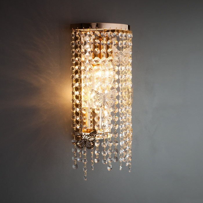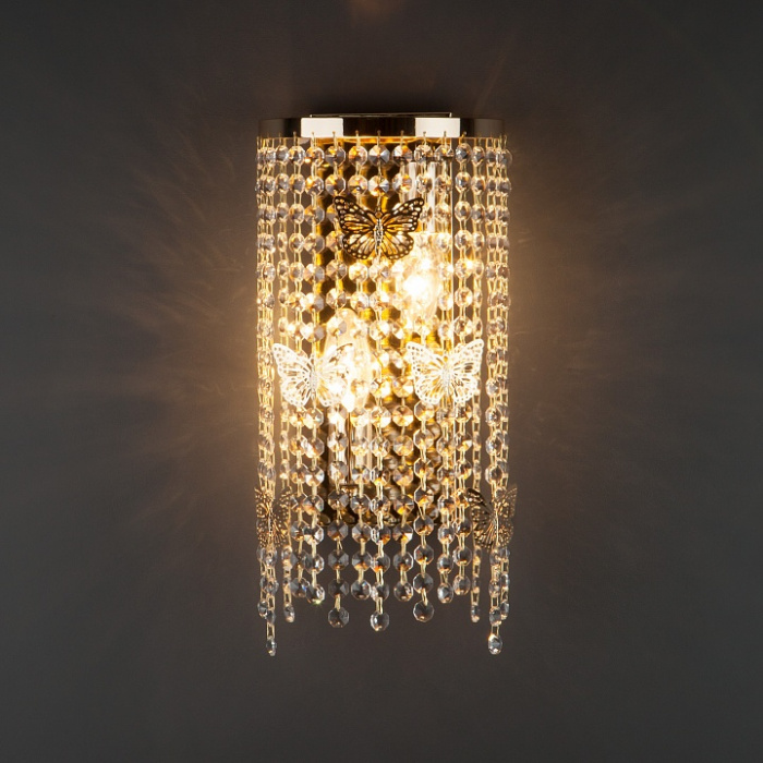 Светильник Евросвет 10015/2 золото/прозрачный хрусталь Strotskis сделает Ваш интерьер современным, стильным и запоминающимся! Наиболее функционально и эстетически привлекательно модель будет смотреться в гостиной, зале, холле или другой комнате. А в комплекте с люстрой и торшером из этой же коллекции сделает интерьер по-дизайнерски профессиональным и законченным.