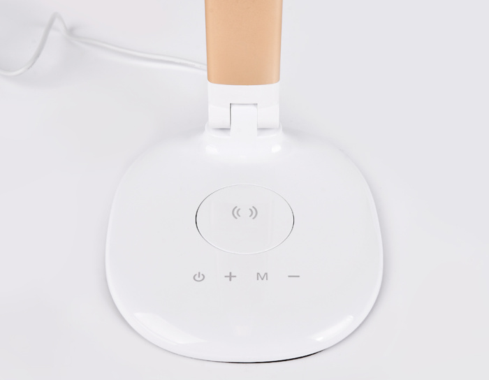 Светодиодная настольная лампа оформлена в современном стиле, со вставкой золотого цвета, и выполнена по стандартам современных технологий. Данная модель оснащена встроенной беспроводной зарядкой для мобильного устройства, а так же режимом диммирования и изменения цветовой температуры, что создаст комфортное освещене для любого потребителя.
