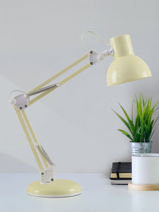 Настольный светильник HT-704 с лампой накаливания мощностью 60Вт, цоколем Е27 для создания местного и комбинированного освещения на учебных и рабочих местах, в местах чтения и отдыха. Конструкция светильников допускает установку плафона во всех плоскостях. Выключатель установлен на проводе, длина провода 1,5м.